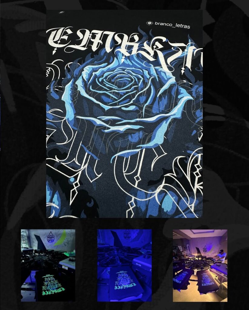 Por isso, a estampa fluorescente que brilha no escuro deixou de ser curiosidade e passou a ser uma estratégia usada por marcas streetwear, eventos, festivais, lançamentos e coleções limitadas.